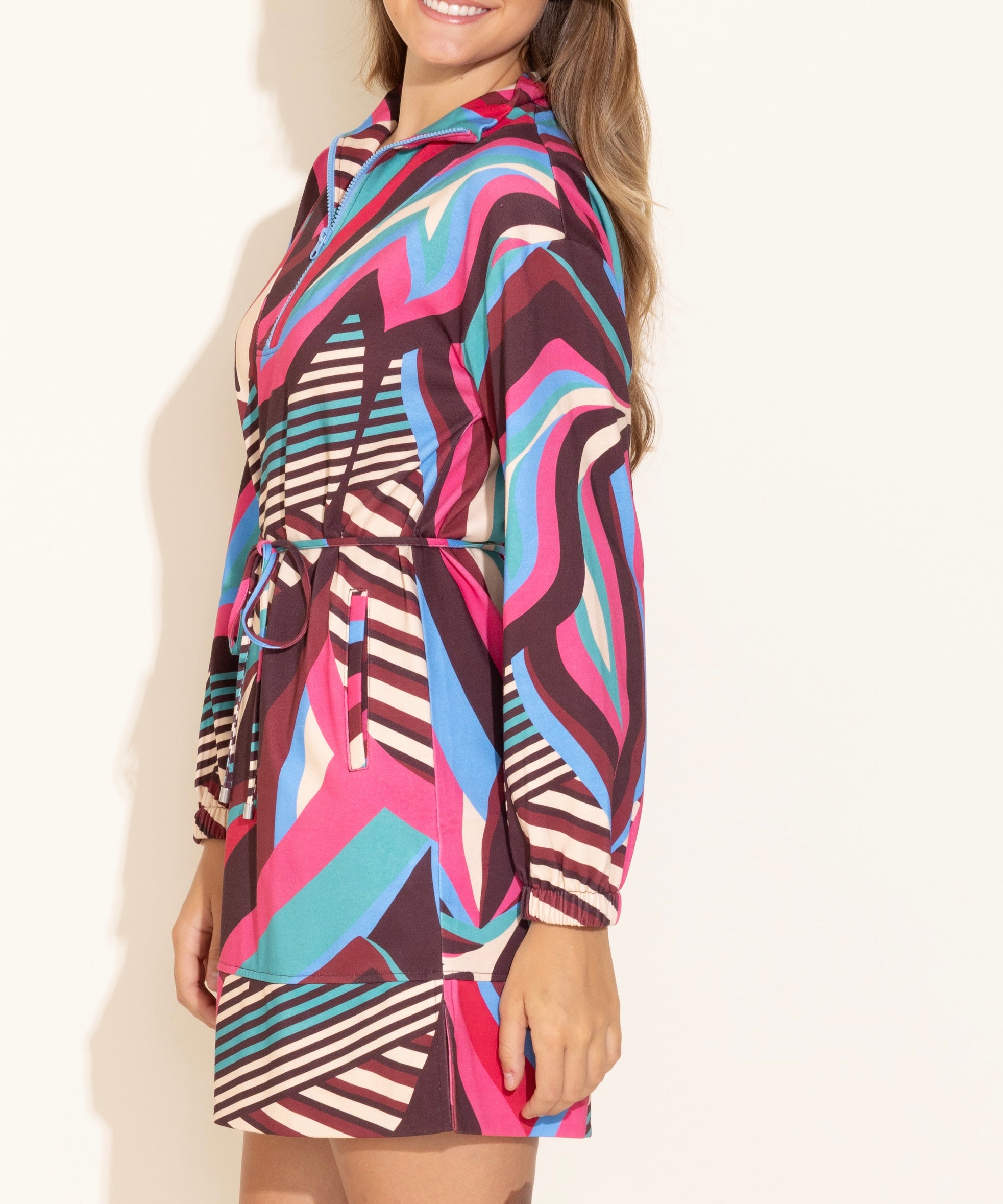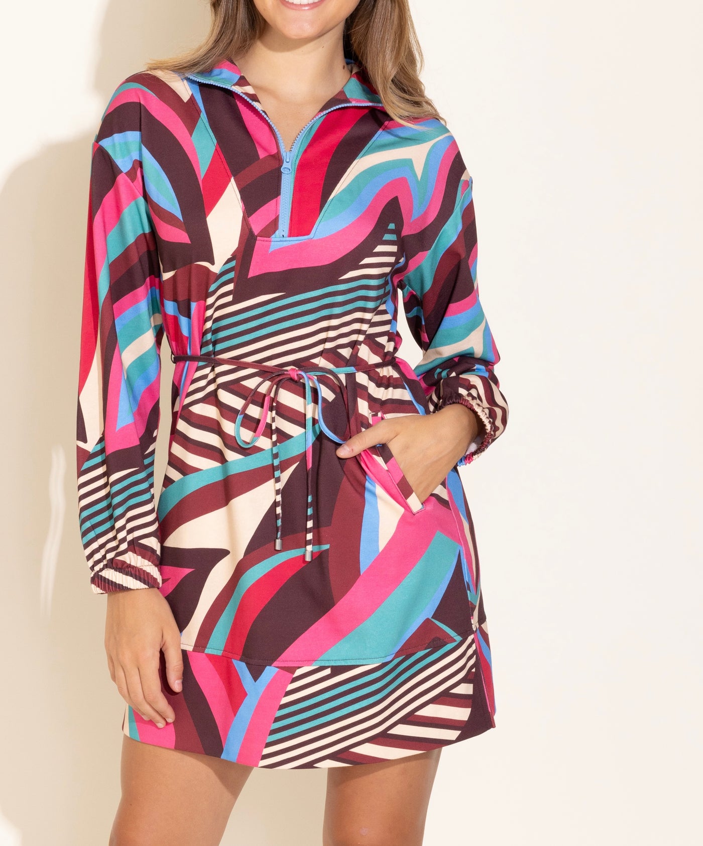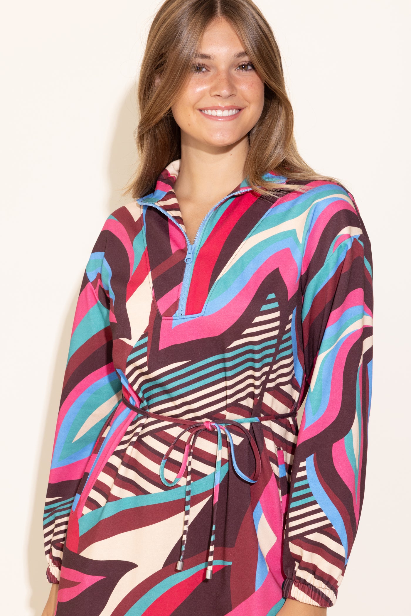 Introducing the ever-so-popular Logan Dress! Perfect for a casual day out on the go or a weekend getaway, this dress is figure flattering with an adjustable tie waist and long sleeves.